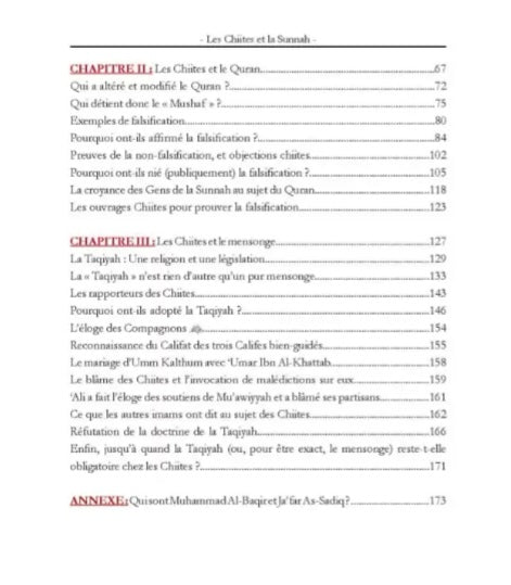 Dans ce livre, nous nous sommes engagés à ne rapporter sur les chiites que des éléments tirés de leurs propres ouvrages, en les citant dans leurs termes exacts, en indiquant l’ouvrage, le volume, la page et l’édition, avec l’aide et la puissance d’Allah. Et tout ce que nous rapportons des livres chiites, provient d’ouvrages reconnus, célèbres et jugés fiables par eux. »