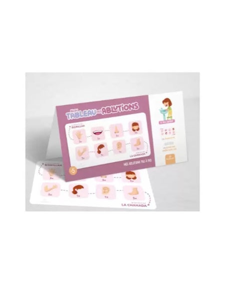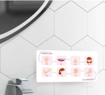 un outil ludique et éducatif idéal pour enseigner les ablutions aux enfants de manière simple et amusante. Compact (19,5 x 10,5 cm) et facile à installer grâce aux autocollants adhésifs inclus, ce tableau en PVC résistant est parfait pour la salle de bain ou la chambre. Ses illustrations colorées captivent l’attention des plus jeunes, rendant l’apprentissage autonome et joyeux. Disponible aussi en beige et bleu, il s’intègre harmonieusement à votre espace tout en rendant l’éducation des ablutions accessible et divertissante.