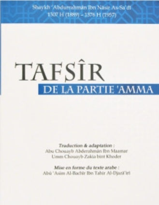 Cette exégèse du Coran, ou Tafsîr, est l’explication détaillée de la partie ‘Amma, qui sont les 37 dernières sourates du Coran. Nous lui avons ajouté la Sourate al-Fâtiha pour son importance. Simple et accessible à tous, cette explication vous ouvrira les portes de la compréhension du Coran. Un ouvrage indispensable à chaque foyer !
